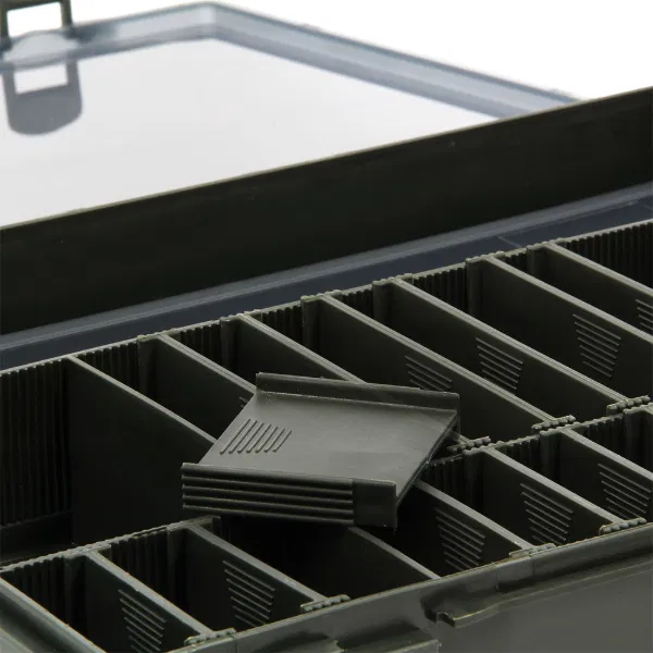 A versatile tackle box system ideal for coarse or carp anglers who want organised storage in one compact setup. Supplied with a main tackle box and moveable dividers to customise your layout, plus six internal bit boxes for terminal tackle and a stiff rig board with 20 pins for storing ready‑tied rigs.
